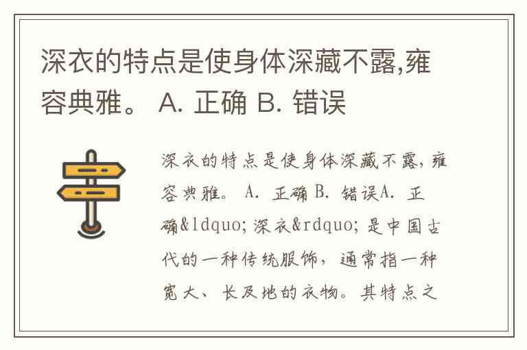 深衣的特点是使身体深藏不露,雍容典雅。 A. 正确 B. 错误