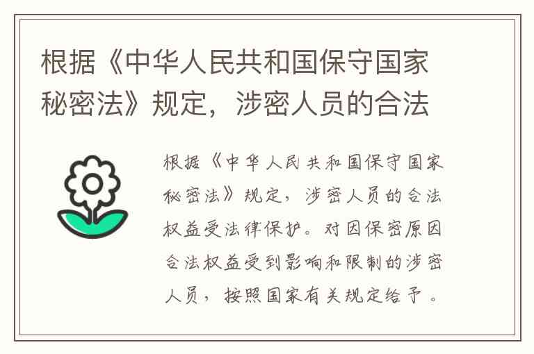 根据《中华人民共和国保守国家秘密法》规定,涉密人员的合法权益受法律保护。对于因保密原因合法权益受到影响和限制的涉密人员,应按照国家有关规定给予 相应待遇或者补偿。