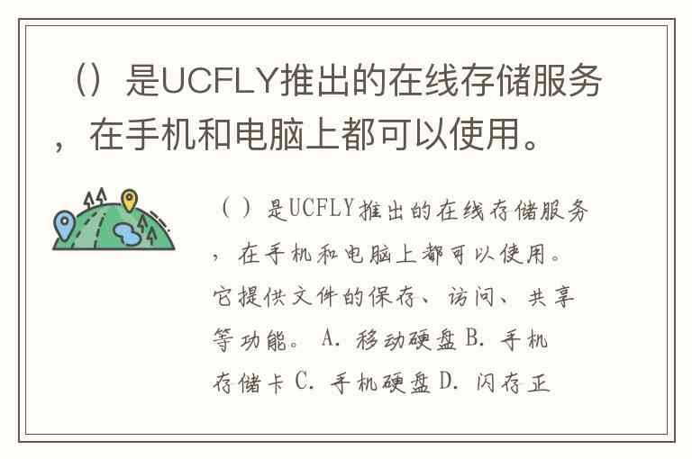 ()是UCFLY推出的在线存储服务,在手机和电脑上都可以使用。它提供文件的保存、访问、共享等功能。 A. 移动硬盘 B. 手机存储卡 C. 手机硬盘 D. 闪存