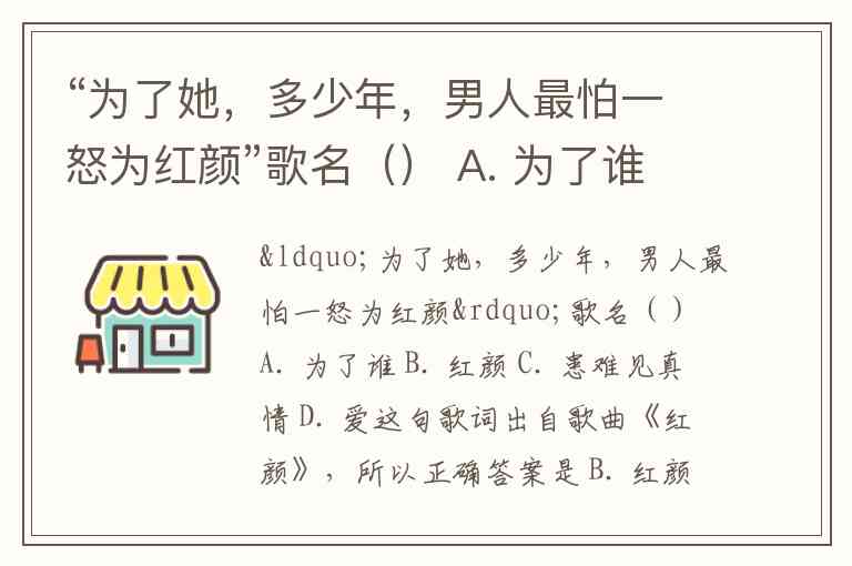 “为了她,多少年,男人最怕一怒为红颜”歌名() A. 为了谁 B. 红颜 C. 患难见真情 D. 爱
