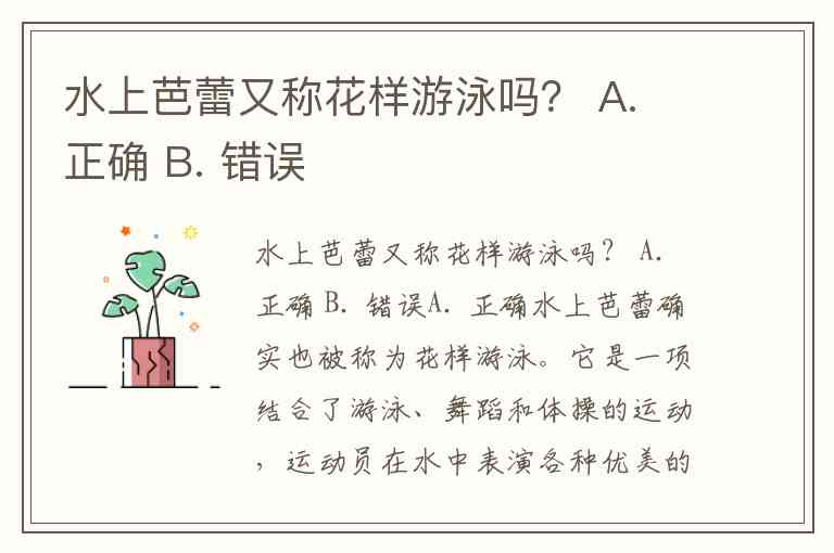 水上芭蕾又称花样游泳吗? A. 正确 B. 错误