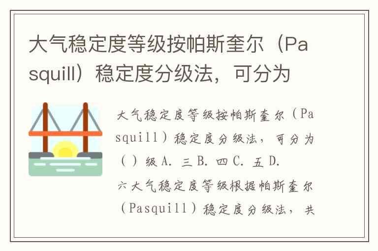 大气稳定度等级按帕斯奎尔(Pasquill)稳定度分级法,可分为()级 A. 三 B. 四 C. 五 D. 六