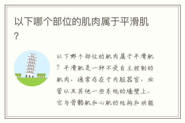 平滑肌是一种不受自主控制的肌肉,通常存在于内脏器官、血管以及其他一些系统的墙壁上。它与骨骼肌和心肌的结构和功能不同。以下是一些平滑肌存在的部位: