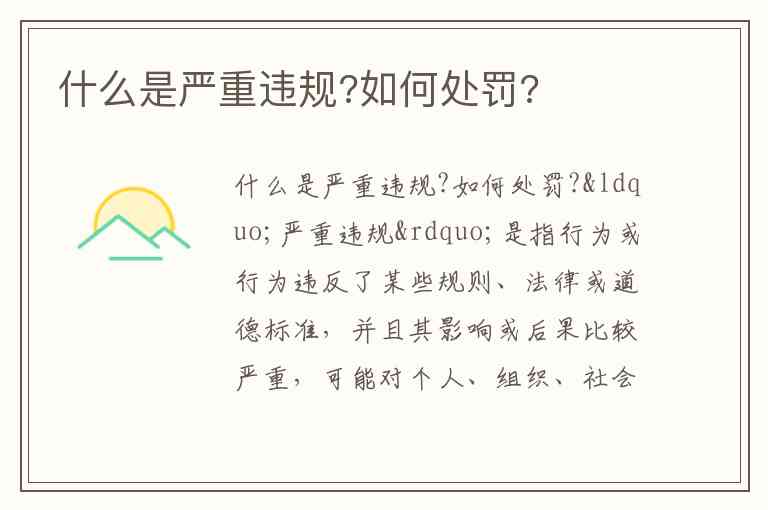 在不同的领域和背景下,严重违规的定义和处罚措施会有所不同。以下是一些常见的领域中的“严重违规”及其处罚方式: