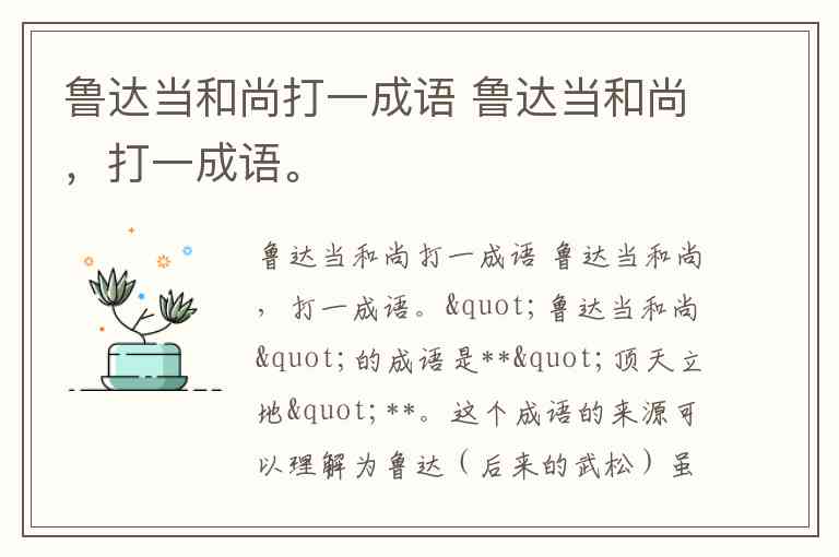 鲁达当和尚打一成语 鲁达当和尚,打一成语。