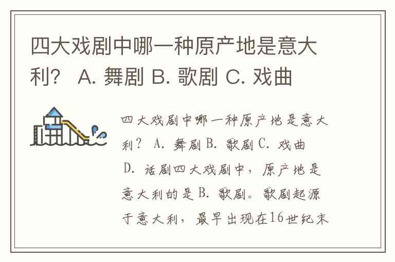 四大戏剧中,原产地是意大利的是 B. 歌剧。