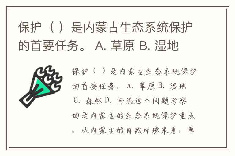 保护( )是内蒙古生态系统保护的首要任务。 A. 草原 B. 湿地 C. 森林 D. 河流