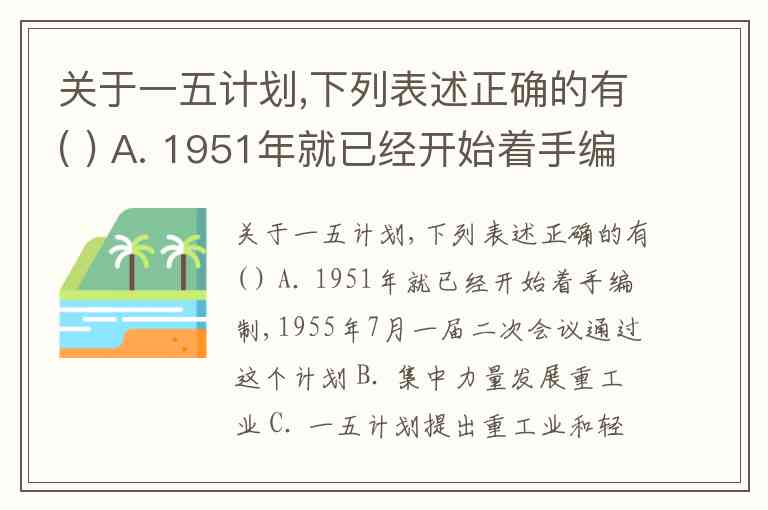 A. 1951年就已经开始着手编制,1955年7月一届二次会议通过这个计划