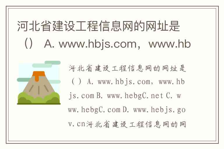 河北省建设工程信息网的网址是() A. www.hbjs.com,www.hbjs.com B. www.hebgC.net C. www.hebgC.com D. www.hebjs.gov.cn