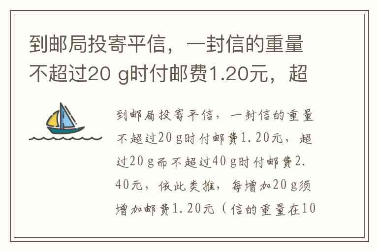 根据题目中的规定,邮费每增加 20 克要增加 1.20 元。我们可以通过以下步骤来计算邮费: