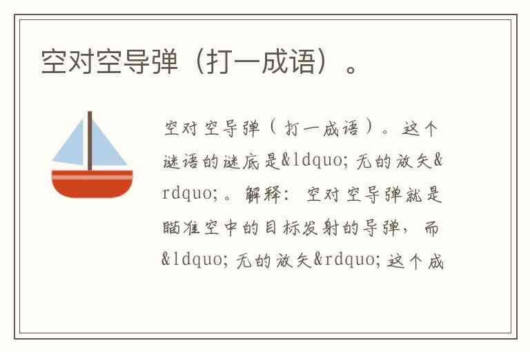 空对空导弹(打一成语)。
