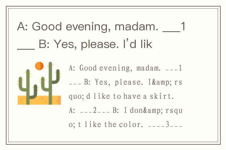 B: Yes, please. I’d like to have a skirt.