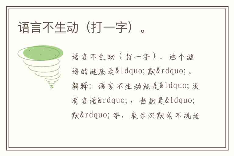 解释:语言不生动就是“没有言语”,也就是“默”字,表示沉默或不说话,符合谜面描述。