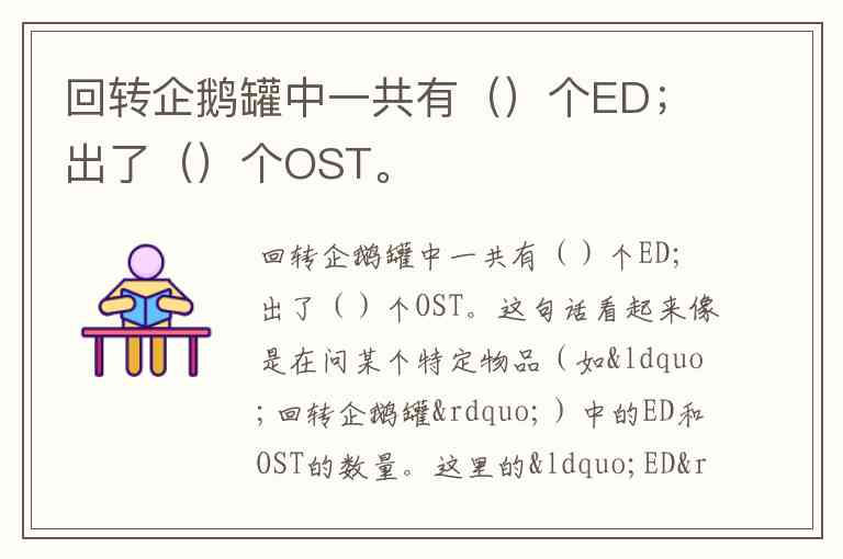 这句话看起来像是在问某个特定物品(如“回转企鹅罐”)中的ED和OST的数量。这里的“ED”指的是“片尾曲”(Ending Theme),而“OST”通常是指“原声带”(Original Soundtrack)。