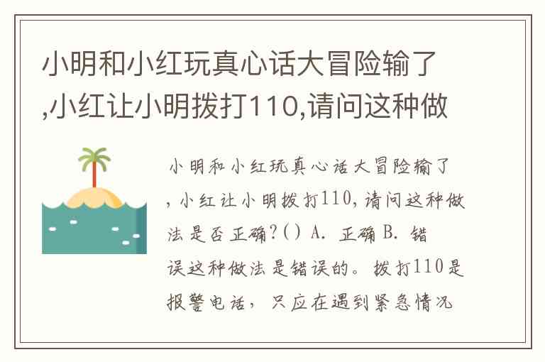 小明和小红玩真心话大冒险输了,小红让小明拨打110,请问这种做法是否正确?( ) A. 正确 B. 错误