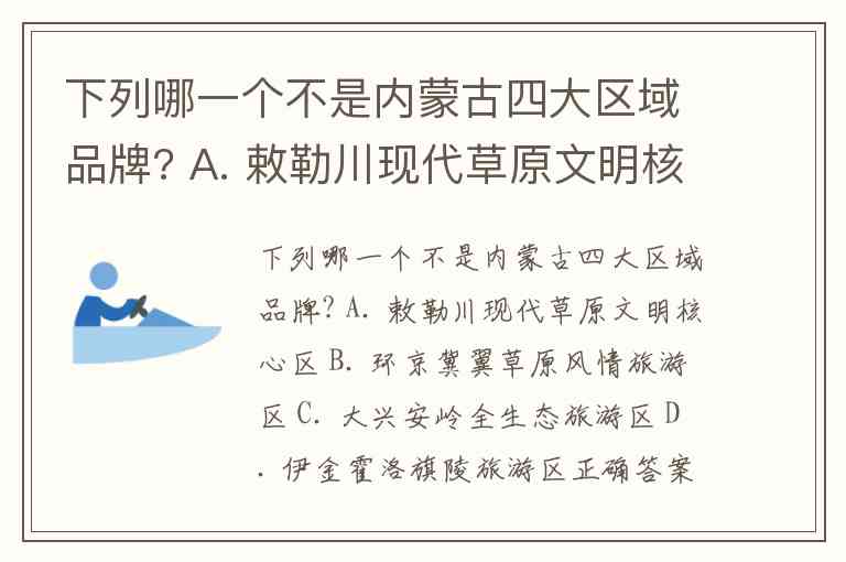 而 伊金霍洛旗陵旅游区 并不是其中之一。伊金霍洛旗位于内蒙古鄂尔多斯市,虽然是一个有着丰富旅游资源的地方,但并不属于内蒙古的四大区域品牌之一。