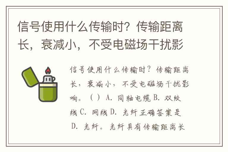 信号使用什么传输时?传输距离长,衰减小,不受电磁场干扰影响。() A. 同轴电缆 B. 双绞线 C. 网线 D. 光纤