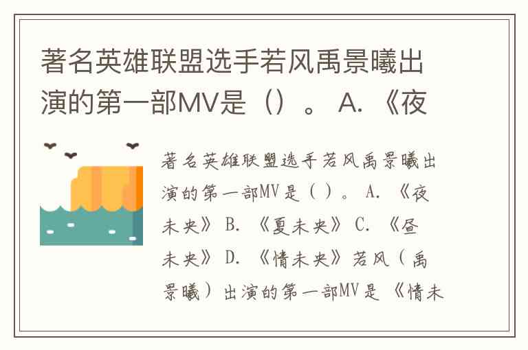 著名英雄联盟选手若风禹景曦出演的第一部MV是()。 A. 《夜未央》 B. 《夏未央》 C. 《昼未央》 D. 《情未央》