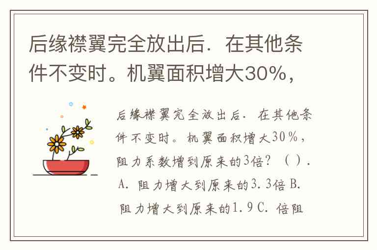 后缘襟翼的作用是增加机翼的升力,同时增加阻力。当襟翼完全放出时,机翼的面积增大30%,阻力系数增加到原来的3倍。我们需要通过这些信息来推算阻力的变化。