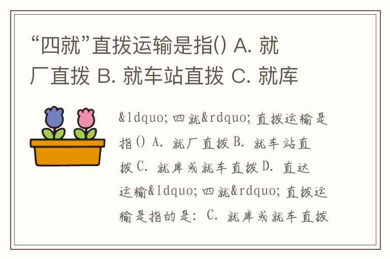 “四就”直拨运输是指() A. 就厂直拨 B. 就车站直拨 C. 就库或就车直拨 D. 直达运输