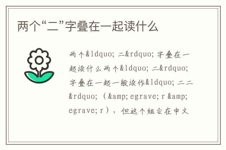 两个“二”字叠在一起一般读作“二二”(èr èr),但这个组合在中文中没有特别的实际意义。如果是一些创意用法、广告语或是网络用语,可能会根据上下文产生不同的含义。