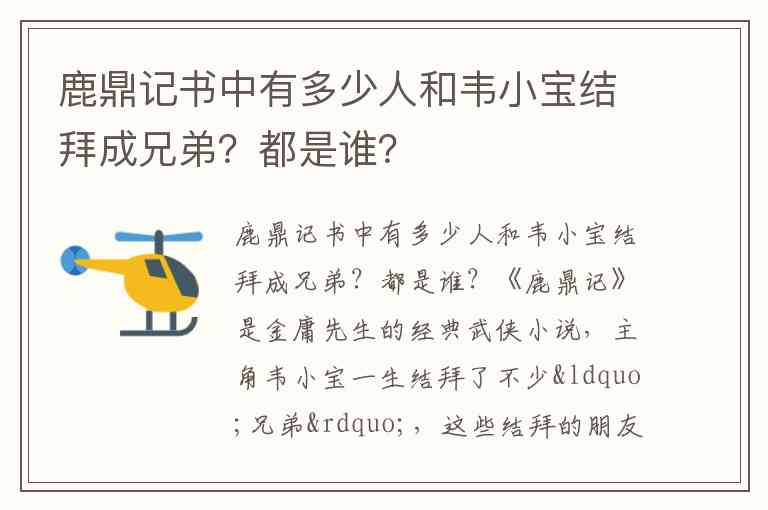 鹿鼎记书中有多少人和韦小宝结拜成兄弟?都是谁?