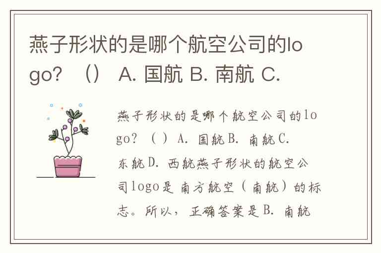 燕子形状的是哪个航空公司的logo?() A. 国航 B. 南航 C. 东航 D. 西航