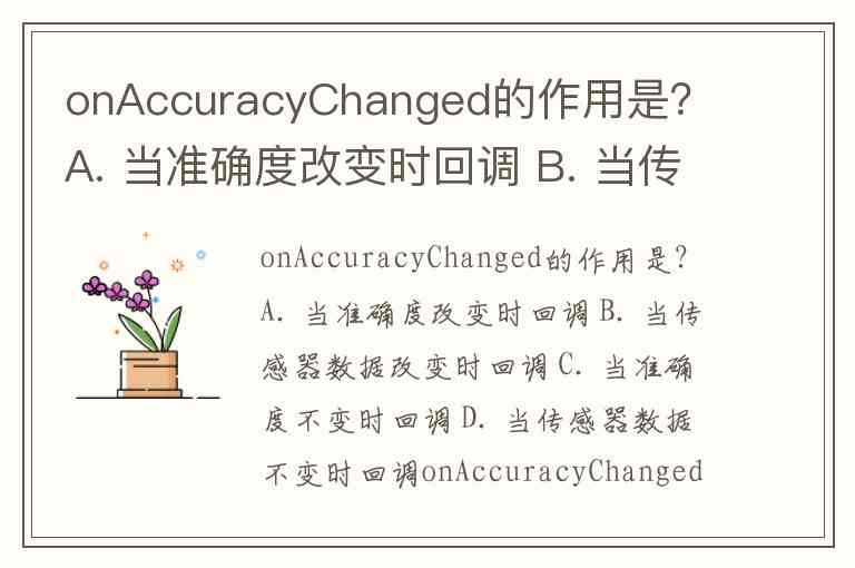 onAccuracyChanged的作用是? A. 当准确度改变时回调 B. 当传感器数据改变时回调 C. 当准确度不变时回调 D. 当传感器数据不变时回调