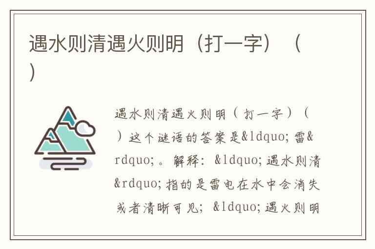 “遇水则清”指的是雷电在水中会消失或者清晰可见;