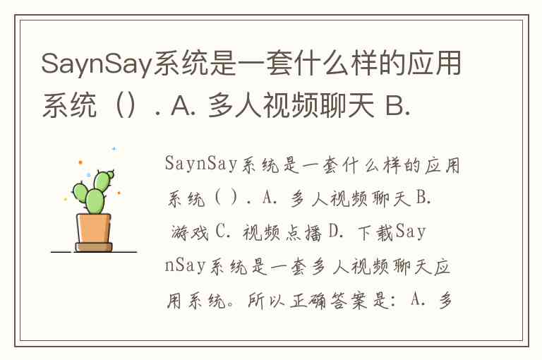 SaynSay系统是一套什么样的应用系统(). A. 多人视频聊天 B. 游戏 C. 视频点播 D. 下载