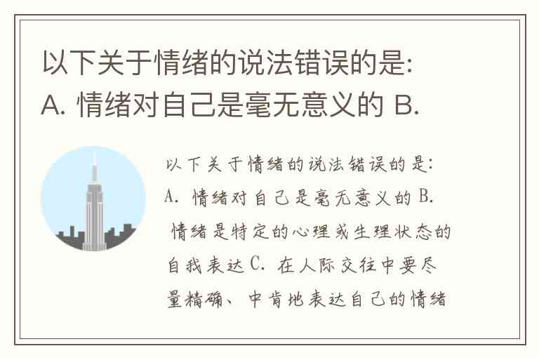关于情绪的说法,错误的选项是 A:情绪对自己是毫无意义的。