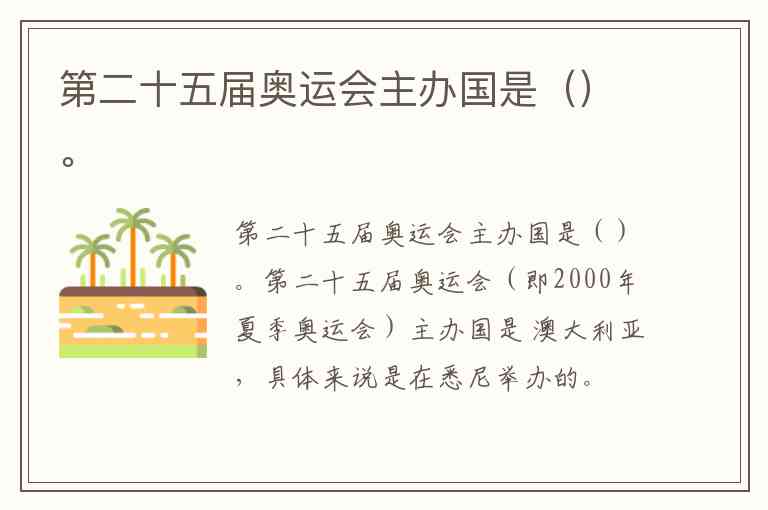 第二十五届奥运会(即2000年夏季奥运会)主办国是