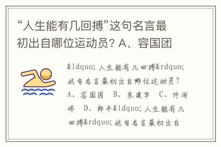 “人生能有几回搏”这句名言最初出自哪位运动员? A、容国团 B、朱建华 C、许海峰 D、郎平