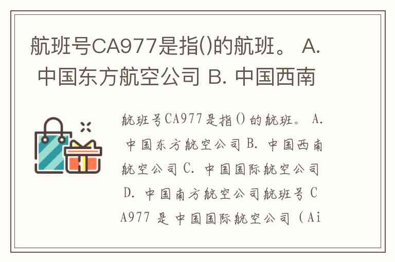航班号CA977是指()的航班。 A. 中国东方航空公司 B. 中国西南航空公司 C. 中国国际航空公司 D. 中国南方航空公司