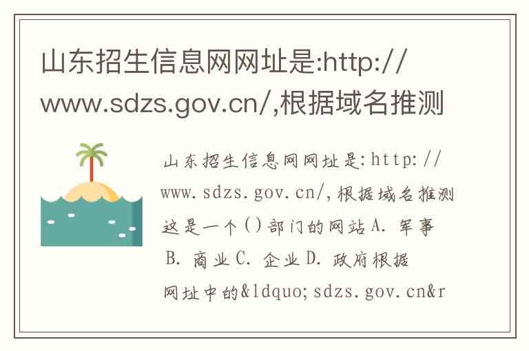 山东招生信息网网址是:http://www.sdzs.gov.cn/,根据域名推测这是一个( )部门的网站 A. 军事 B. 商业 C. 企业 D. 政府