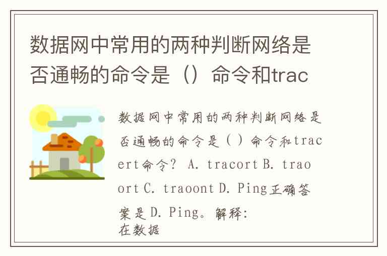 数据网中常用的两种判断网络是否通畅的命令是()命令和tracert命令? A. tracort B. traoort C. traoont D. Ping