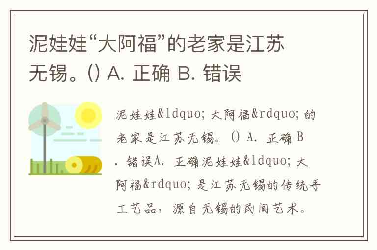 泥娃娃“大阿福”的老家是江苏无锡。() A. 正确 B. 错误