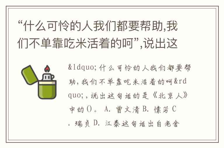 “什么可怜的人我们都要帮助,我们不单靠吃米活着的呵”,说出这句话的是《北京人》中的()。 A. 曾文清 B. 愫芳 C. 瑞贞 D. 江泰
