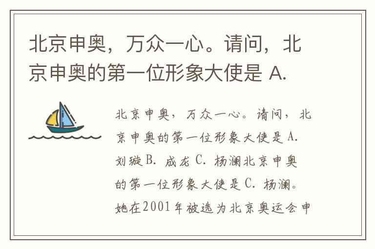 北京申奥,万众一心。请问,北京申奥的第一位形象大使是 A. 刘璇 B. 成龙 C. 杨澜
