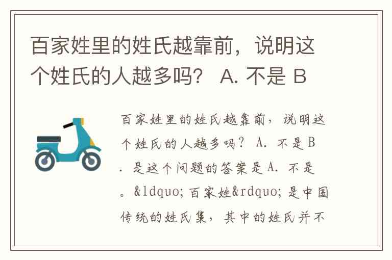 百家姓里的姓氏越靠前,说明这个姓氏的人越多吗? A. 不是 B. 是