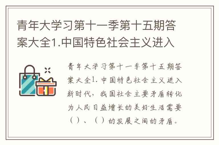 青年大学习第十一季第十五期答案大全1.中国特色社会主义进入新时代,我国社会主要矛盾转化为人民日益增长的美好生活需要()、()的发展之间的矛盾。 A. 不平衡 B. 不平均 C. 不高效 D. 不充分