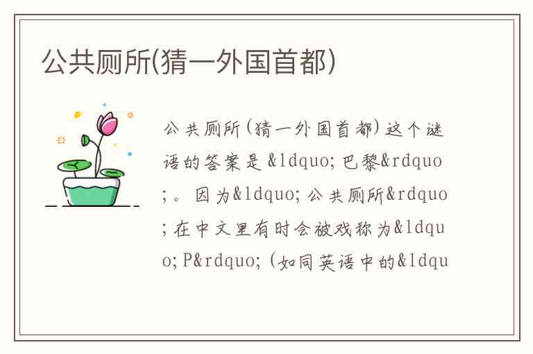 因为“公共厕所”在中文里有时会被戏称为“P”(如同英语中的“pee”),而“巴黎”发音类似于“P”。