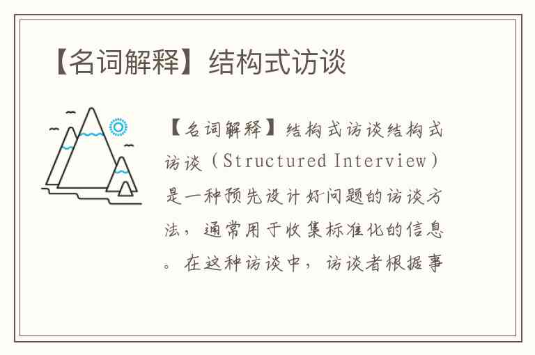 总之,结构式访谈是一种严谨且高效的访谈方式,适用于对比和分析数据时,尤其是在需要标准化信息的场合。