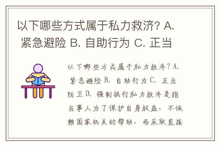 以下哪些方式属于私力救济? A. 紧急避险 B. 自助行为 C. 正当防卫 D. 强制执行