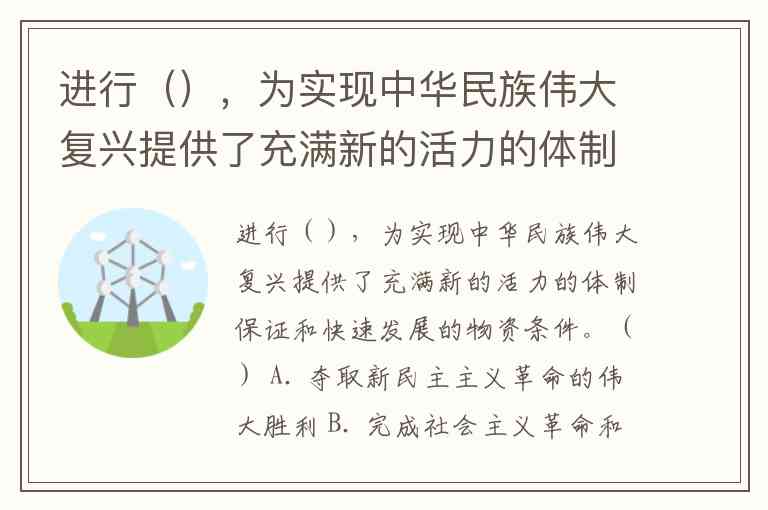 进行(),为实现中华民族伟大复兴提供了充满新的活力的体制保证和快速发展的物资条件。() A. 夺取新民主主义革命的伟大胜利 B. 完成社会主义革命和推进社会主义建设 C. 改革开放和社会主义现代化建设 D. 开创中国特色社会主义新时代