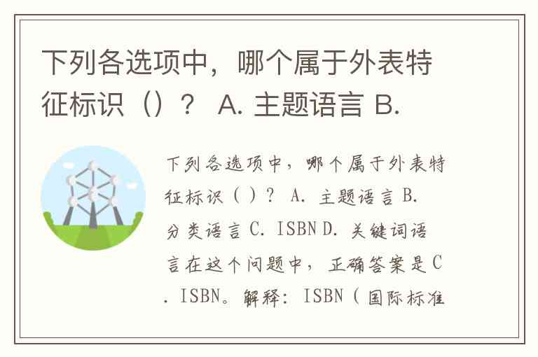 下列各选项中,哪个属于外表特征标识()? A. 主题语言 B. 分类语言 C. ISBN D. 关键词语言