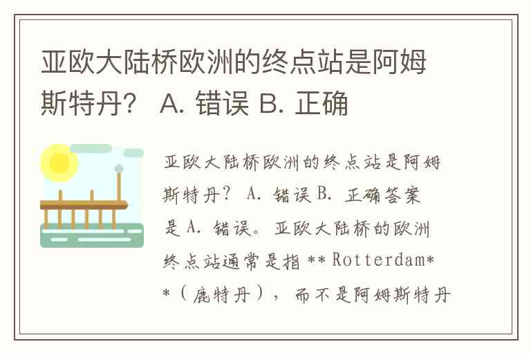 亚欧大陆桥欧洲的终点站是阿姆斯特丹? A. 错误 B. 正确