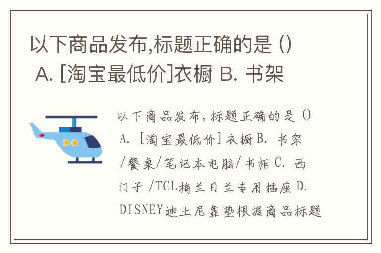 以下商品发布,标题正确的是 () A. [淘宝最低价]衣橱 B. 书架 /餐桌/笔记本电脑/书柜 C. 西门子 /TCL梅兰日兰专用插座 D. DISNEY迪土尼靠垫