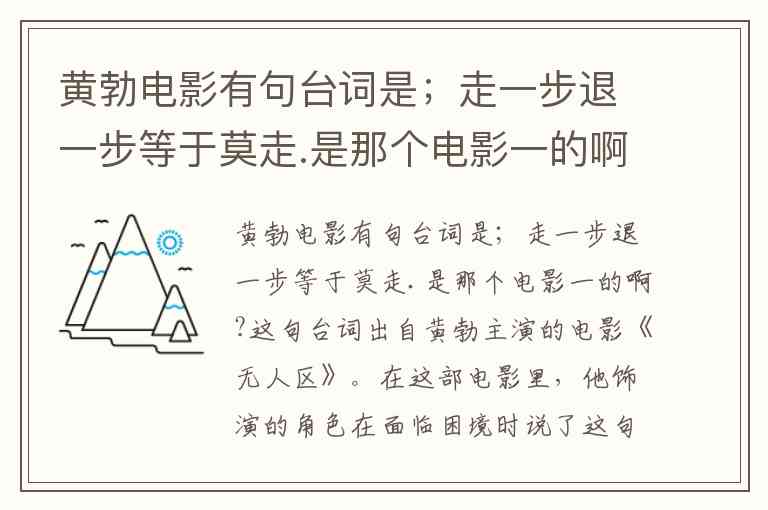 黄勃电影有句台词是;走一步退一步等于莫走.是那个电影一的啊?