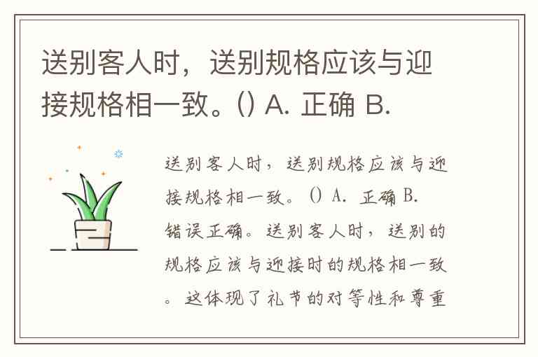 送别客人时,送别规格应该与迎接规格相一致。() A. 正确 B. 错误